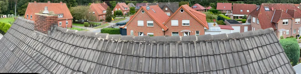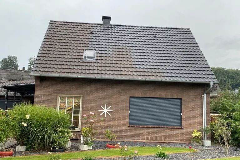Dieses Dach wurde nur halb fertig gemacht, es handelte sich um eine Firma aus Hessen mit Postadresse in Hamburg. Das Dach hat Tonziegeln, wenn man das Beschichten möchte, muss man vorher gründlich reinigen und nach Trocknung grundieren, das wurde nach Zeugenaussagen nicht gemacht.